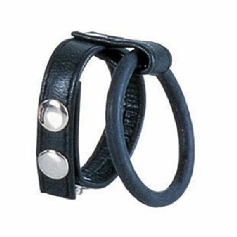 The Ballâ„¢ Spreader from CalExotics is a high quality erection enhancer featuring a rubber cock ring and an adjustable ball spreader made of genuine leather with steel plated snaps. The cock ring is designed to slide over and grip the base of an erection, while the leather strap wraps around the base of the scrotum at a tension of your choice. The combination of pressure from each strap helps to prolong ejaculation and enhance satisfaction. You’ll love its comfortable fit and body-safe material that’s highly recommended for use with a quality lubricant.