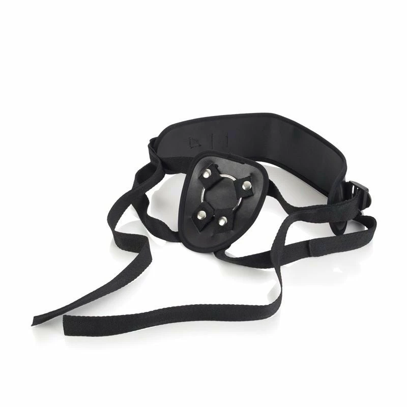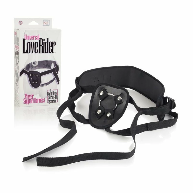 From CalExotics Universal Love Rider® collection, the Power Support Harnessâ„¢ is a high quality adjustable strap-on harness featuring a formfitting, full-coverage design that fits any sized ring to support your probe of choice. Fitting up to a 70″ waist, the unisex Power Support Harnessâ„¢ includes elastic leg straps for convenience and a supportive back strap. This harness is made of body-safe materials that are machine or hand washable.Â