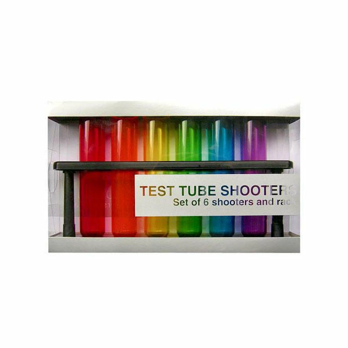 These colourful and durable Acetate Test Tube Shooters from Kheper Games are sure to be a hit at your next party. Pack includes 6 test tubes and 1 display rack.