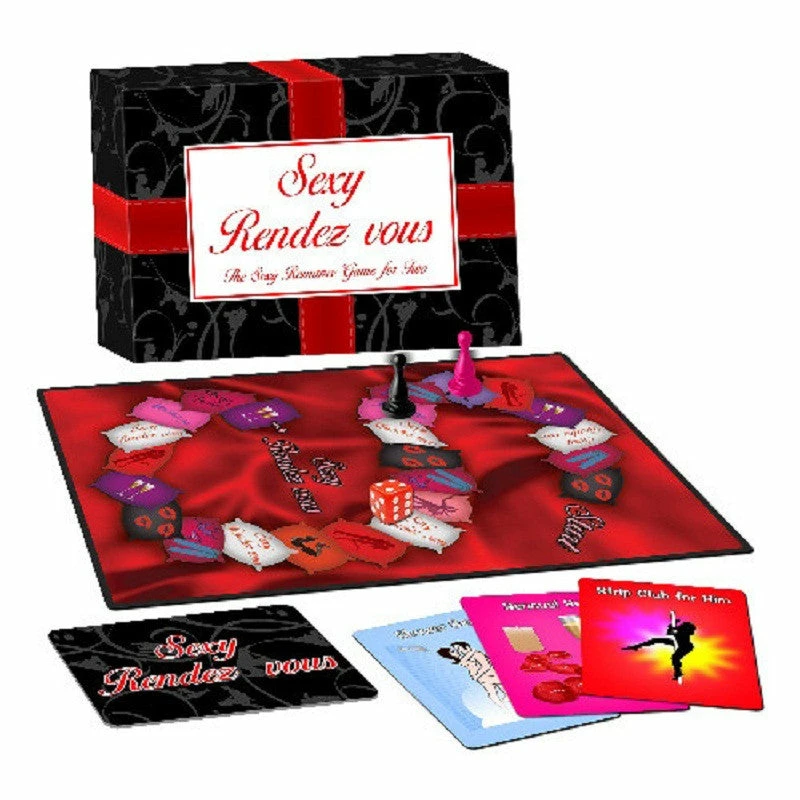 Box Includes: 1 game board, 10 sexy rendez vous scenario cards, 2 game markers, 1 die, and game rules.