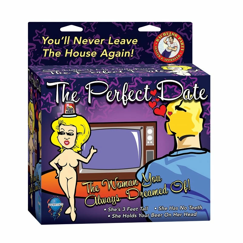 Save your time and money going out and enjoy The Perfect Date from the comfort of your own home! At 3 feet tall, with no teeth and a beer-holding head, this hilarious blow-up doll is the perfect gag-gift and party novelty!