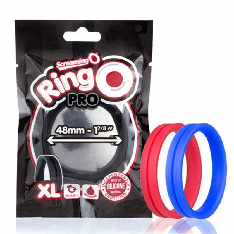 The RingO Pro LG XL is a wide band penis ring that helps maintain your erection for longer. Because it restricts the blood flow out of the penis, there is more blood available when you wear this ring, making your erection bigger also making it last longer. Made of 100% True Silicone, the cock ring stretches up to 1 7/8 inches in diameter and fits almost all sizes. It’s easy to store and easy to clean as well.Â