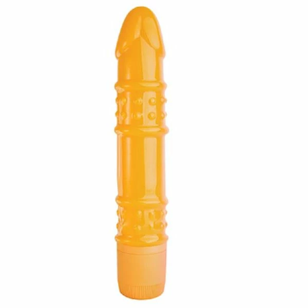 From Topco’s colorful Climax® Neon collection, the OMG Orange Vibe includes a stimulating realistic tip and textured shaft featuring rows of stimulating nubbies and ringed ridges. Offering 6.75″ of insertable length, this bendable, textured vibe offers multiple speeds of escalating vibration controlled by a gently turning base. The OMG Orange Vibe is phthalates-free, body-safe, waterproof and easy to clean with a sex toy cleaner.
