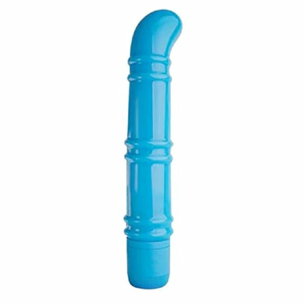 From Topco’s colorful Climax® Neon collection, the Electric Blue Vibe includes a curved g-spot tip and ringed ridges along the shaft for added stimulation. Offering 7.5″ of insertable length, this bendable, textured vibe offers multiple speeds of escalating vibration controlled by a gently turning base. The Electric Blue Vibe is phthalates-free, body-safe, waterproof and easy to clean with a sex toy cleaner.